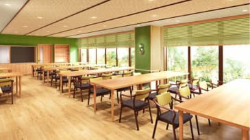 - 食堂は“我が家”のような安心感と開放感のある大きな窓で明るく快適な時間を提供。