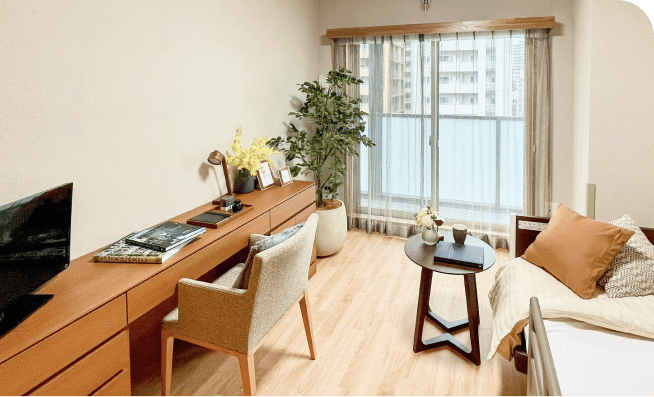 いつまでもご自分らしく生活していただくため、安心して暮らせる心地よい空間 をご用意しています。