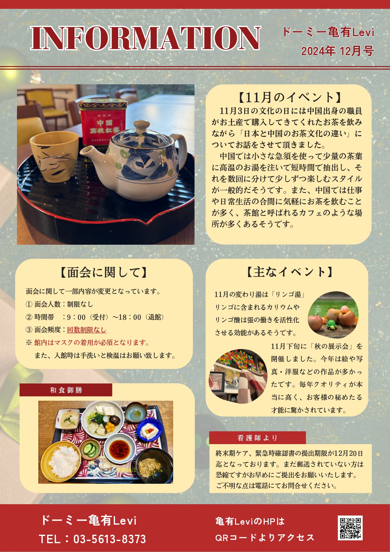 ドーミー亀有Leviの日々の様子をお伝えする “information” !!