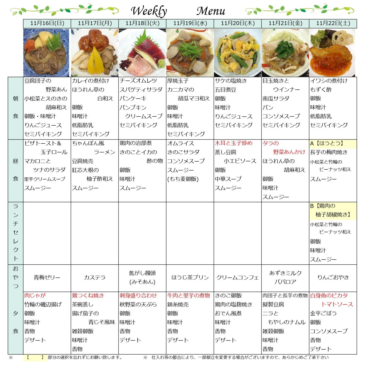 住まいにより若干異なりますが、介護付きドーミーの献立を例に掲載します。
