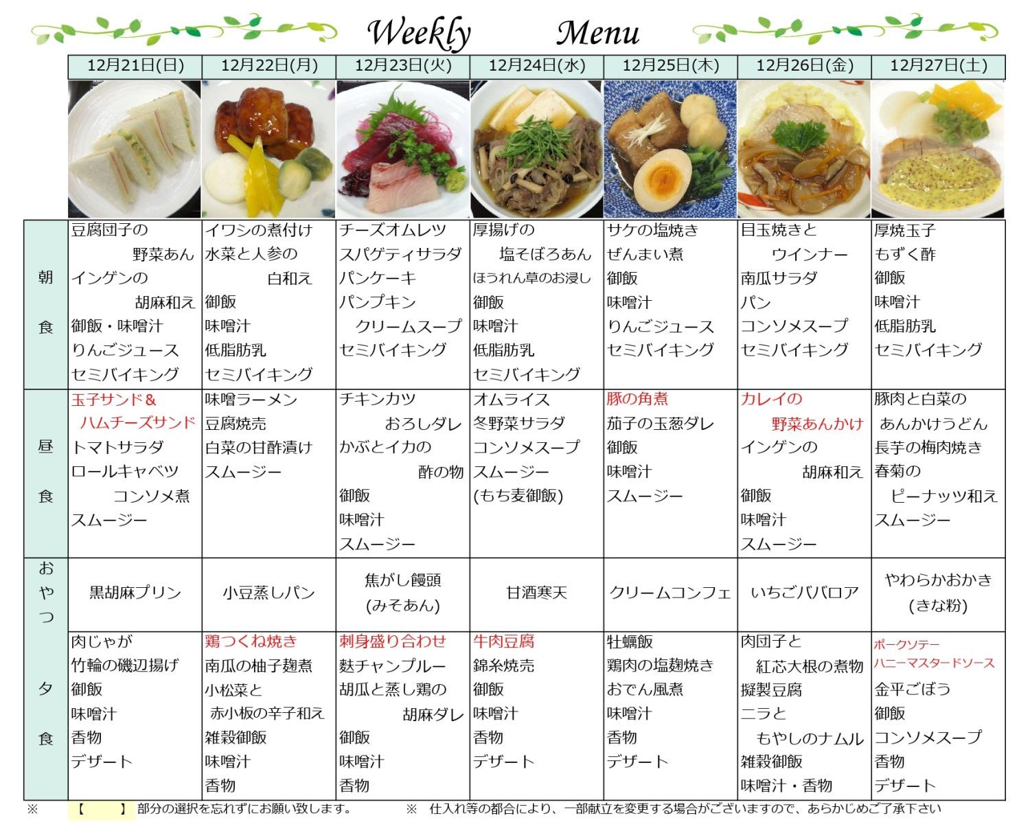 住まいにより若干異なりますが、介護付きドーミーの献立を例に掲載します。