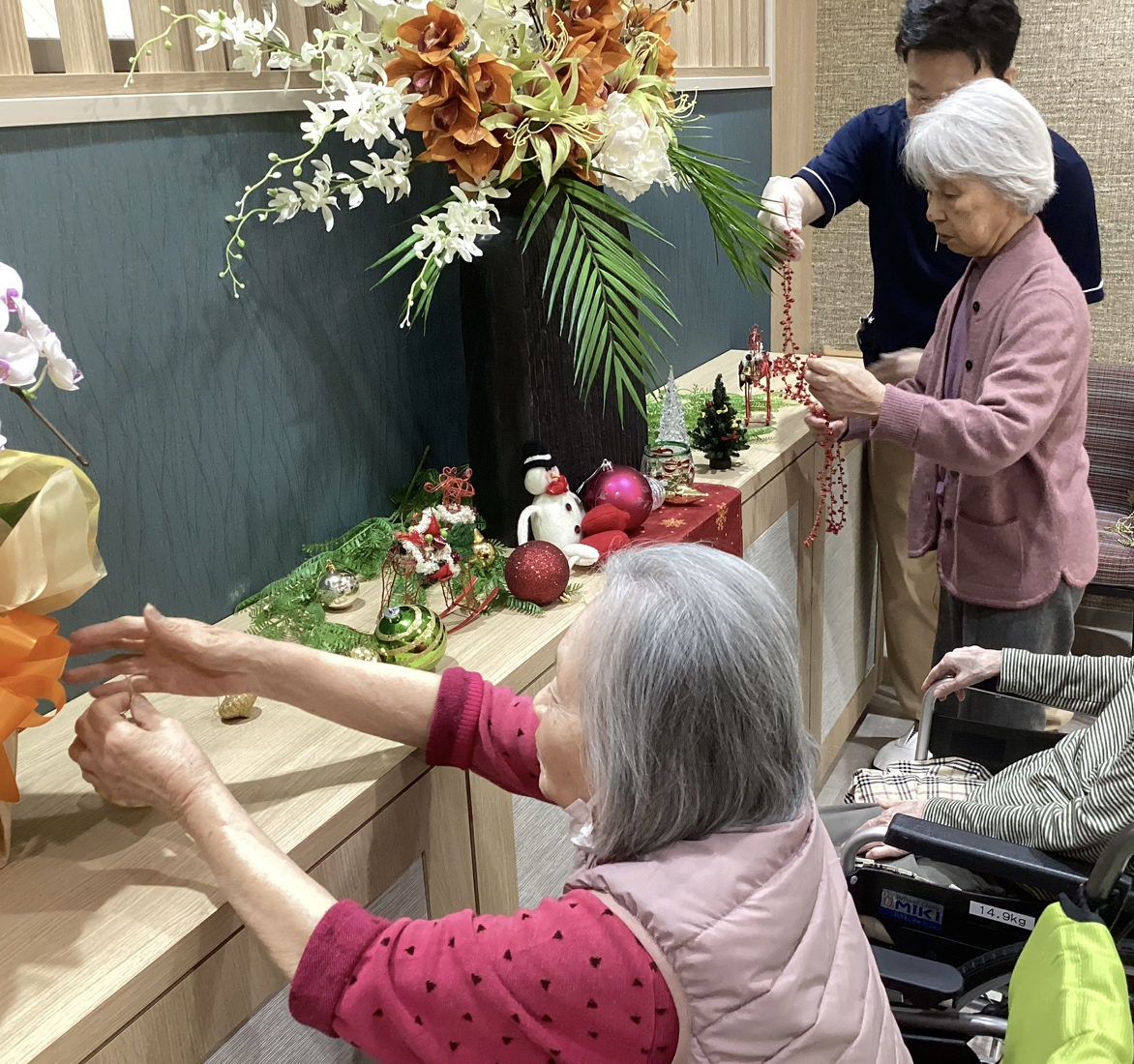 エントランス入ってすぐの大きなクリスマスツリーは、お客様と一緒に飾り付けを行いました🎄🪄︎︎