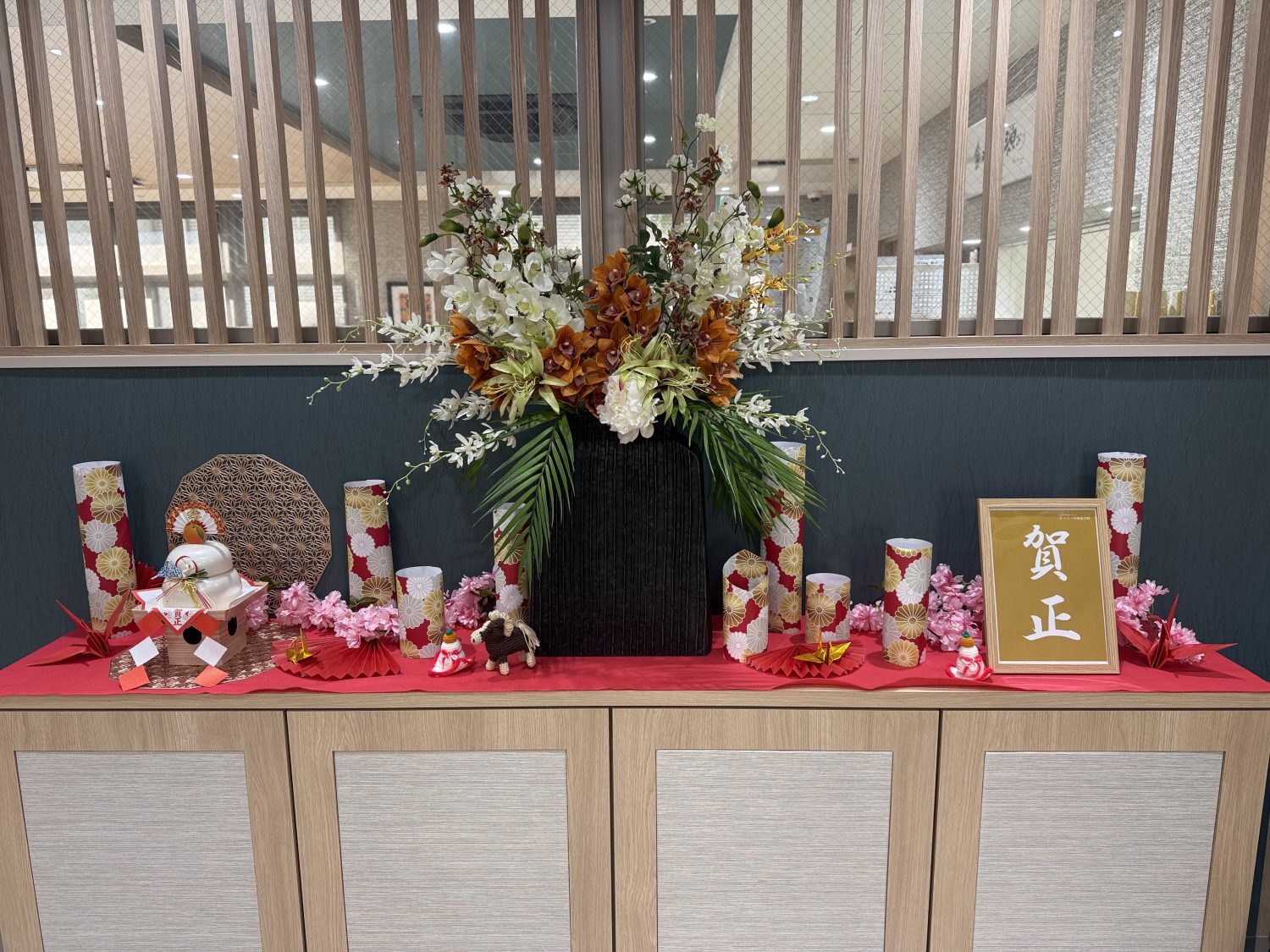 玄関や共有スペースには、鏡餅やしめ飾り、干支の飾りを設置しました。