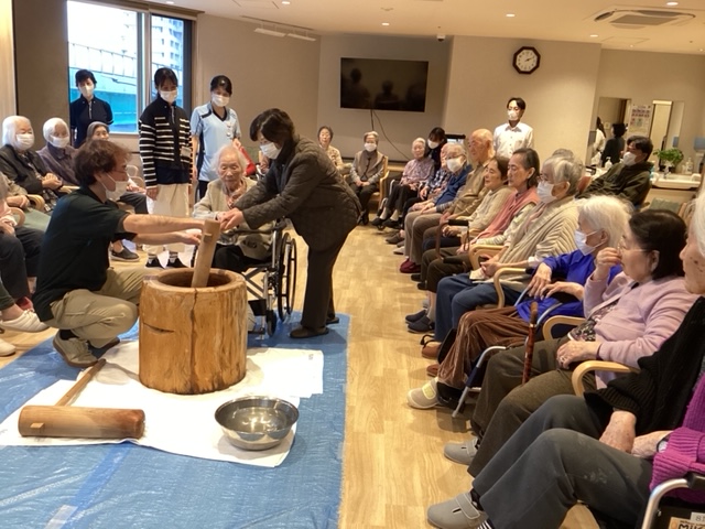 ドーミー月島駅前で、お餅つき大会を行いました🎍