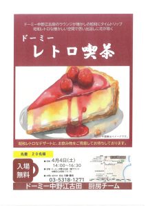 4/4(土):大注目!ドーミーレトロ喫茶 🍰☕️(14:00〜16:30)