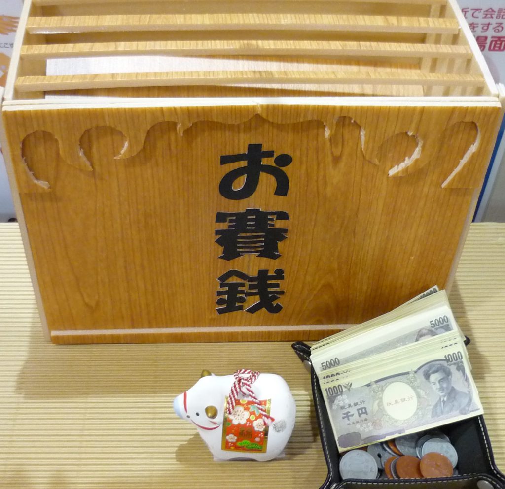 エントランスに鳥居やお賽銭箱を設置し、今年一年のお客様の健康を祈りました。