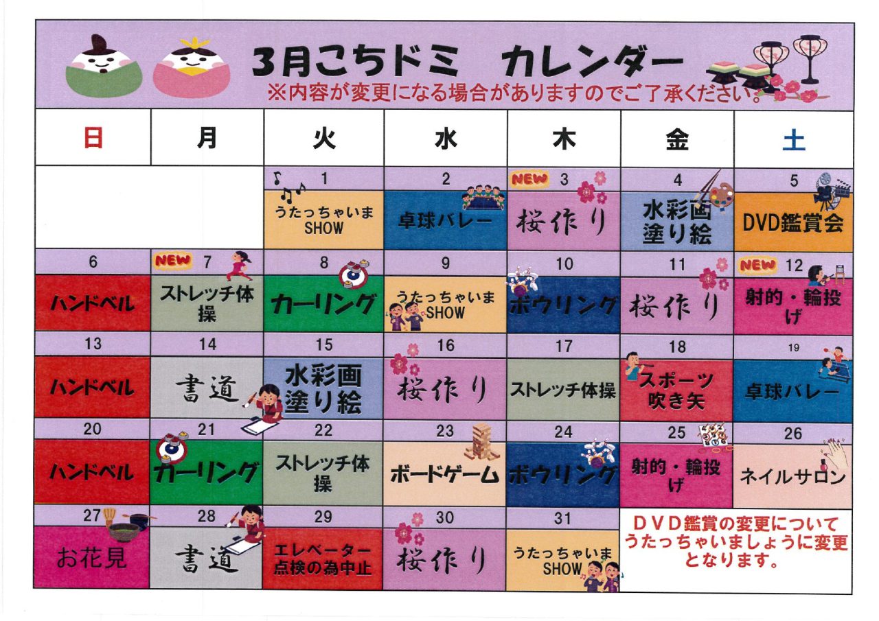 2022年3月のイベントカレンダーを掲載いたします。