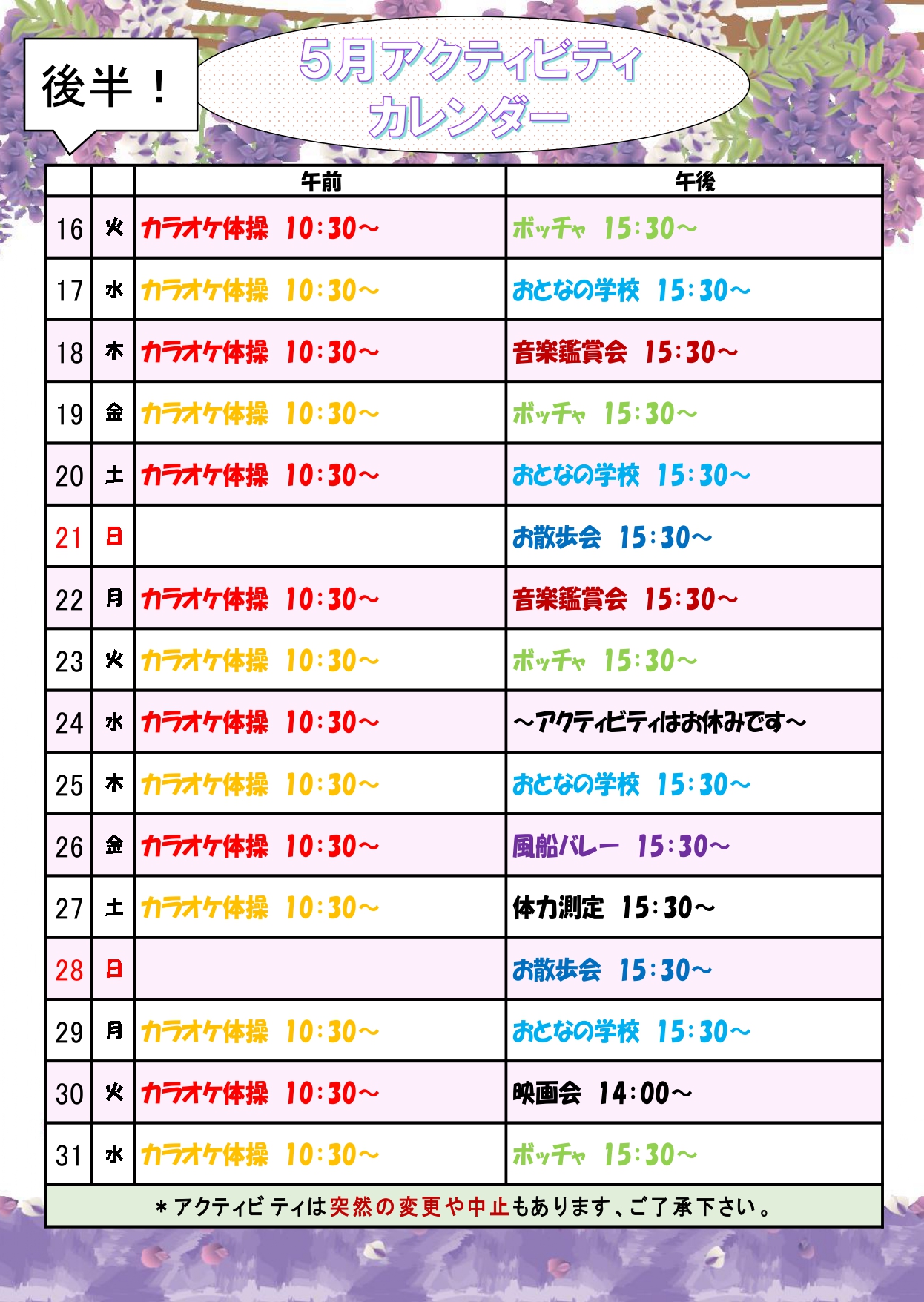 新型コロナウイルスの関係で、イベント内容を変更する場合がございます。