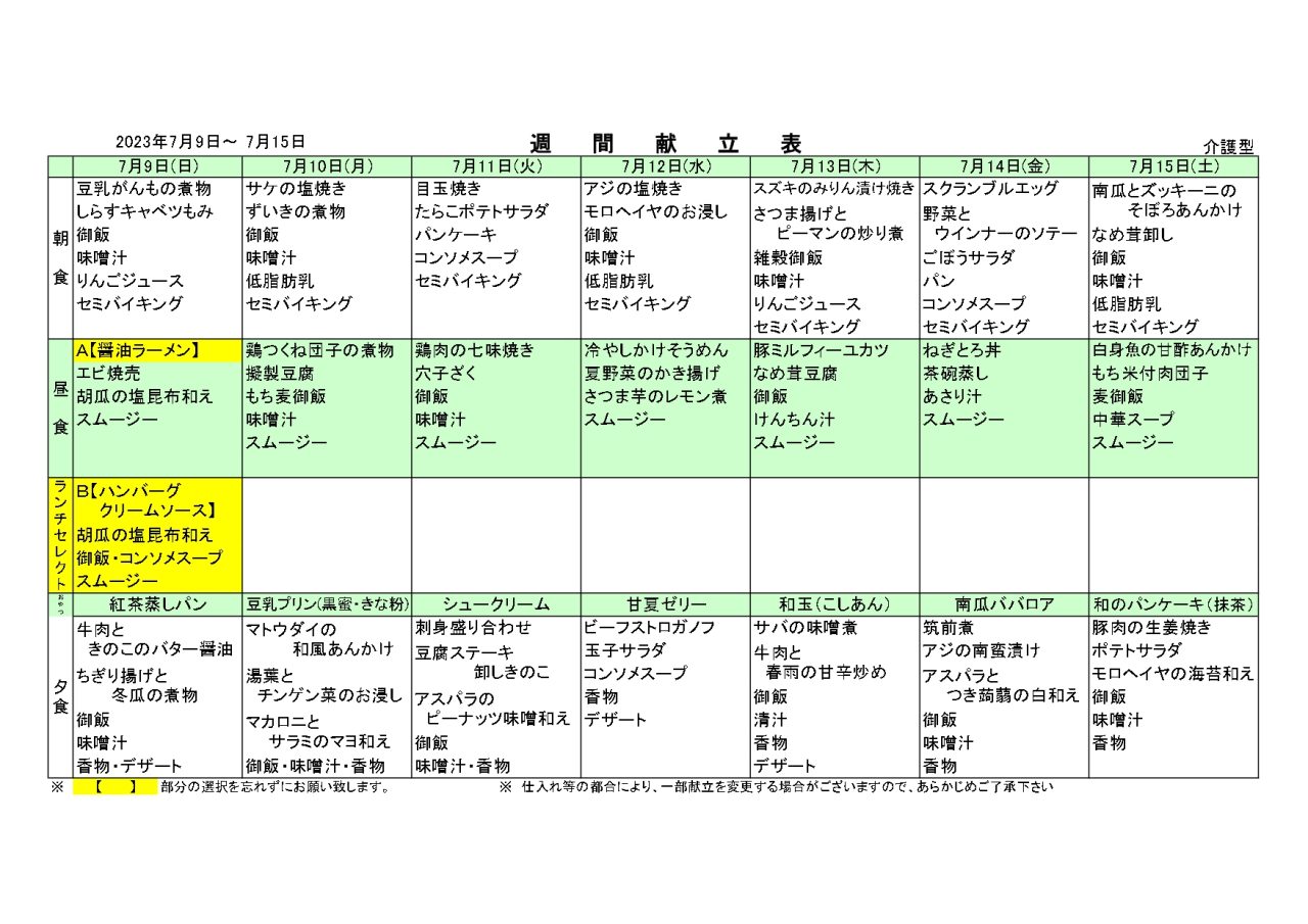 2023年7月の食事献立をご紹介します!